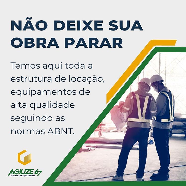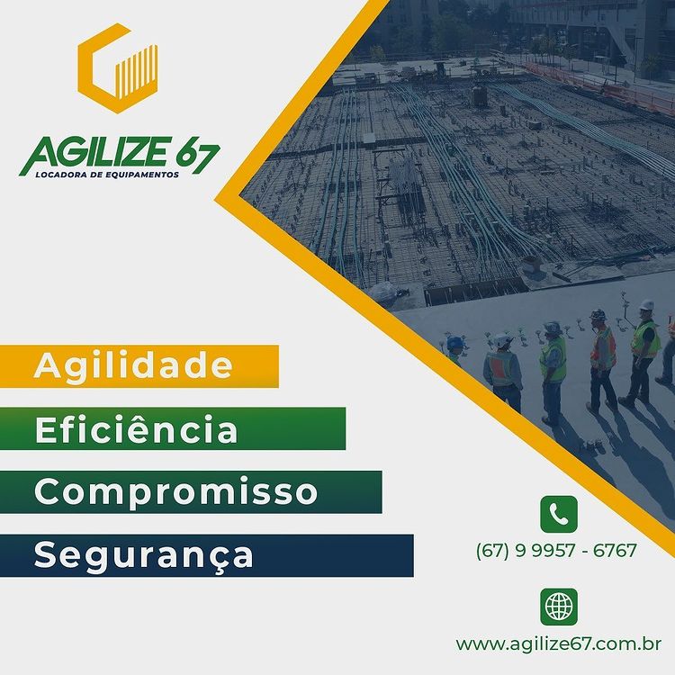 Bem-vindo à Agilize 67, sua parceira confiável em locação de equipamentos e ferramentas para a construção civil. Nosso compromisso é fornecer soluções de alta qualidade, atendimento personalizado e eficiência em cada projeto.